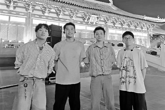 国庆中秋假期第一天,夜幕降临,台上灯光亮起,四位年轻人站在了殿宇前,台下人头攒动,掌声和欢呼声四起。